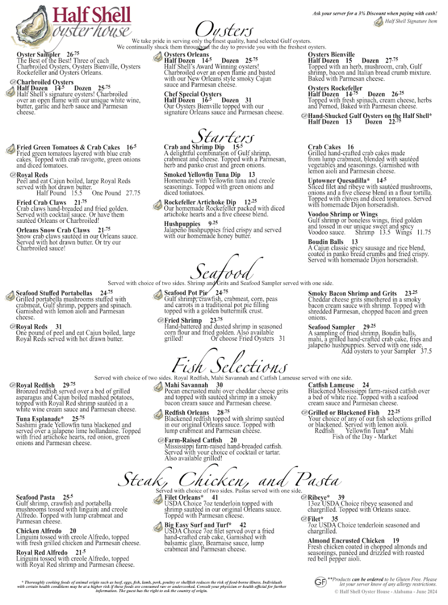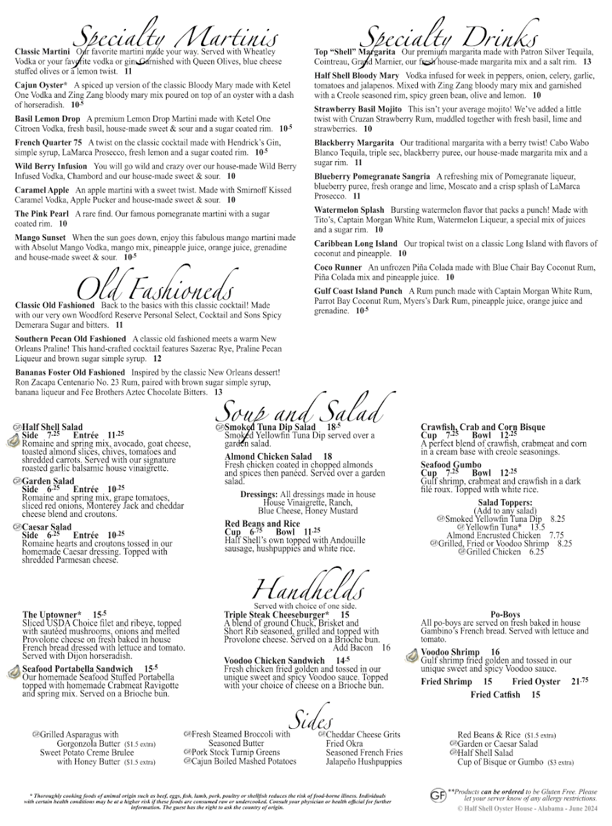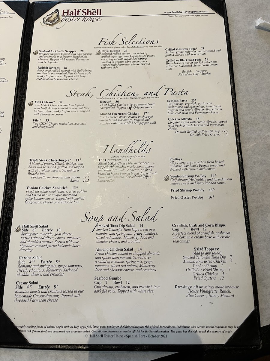 Introducing the Menu at Half Shell Oyster House Spanish Fort